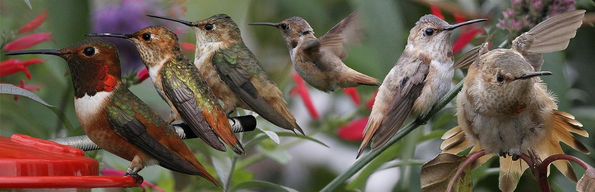 Very rare in late fall and winter but previously overlooked. In most plumages, almost identical to RUHU. Only safely separated from RUHU by narrower tail feathers with more extensive white tips. ID: Ad ?: narrower tail feathers and broadest in imm ? - it is always necessary to age and sex birds for comparative purposes. This ID is extremely difficult in the field but is possible. Allen's molts earlier so usually looks faded by late fall and averages more extensive red on rump. Ad ?: greener back and crown than RUHU.
