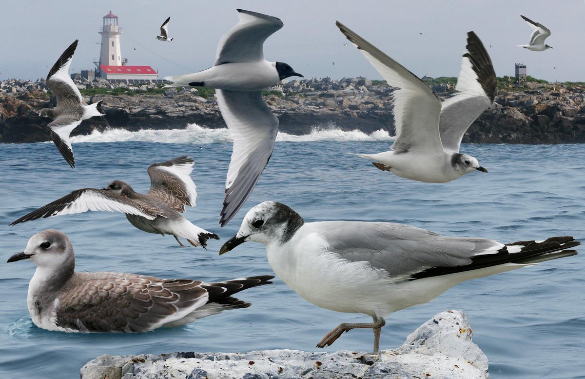 Scarce high-Arctic breeder. Typically migrates far offshore, but some close to shore or inland lakes, particularly in Sep. Few winter records. A beautiful gull with tern-like qualities and striking upperwing made of triangular patterns. Forked tail seems to have limited use. Often mistaken for larger and broader-winged juv BLKI, which also has narrower and poorly-defined 'M' pattern. Ad br: black-bordered gray hood. Pale-tipped black bill. Keeps dark hood into fall. 2nd-s: as nonbr with heavily worn flight feathers. Juv: brown replaces areas of gray in adult. Color can be difficult to judge at distance. Darker neck and black tail band.