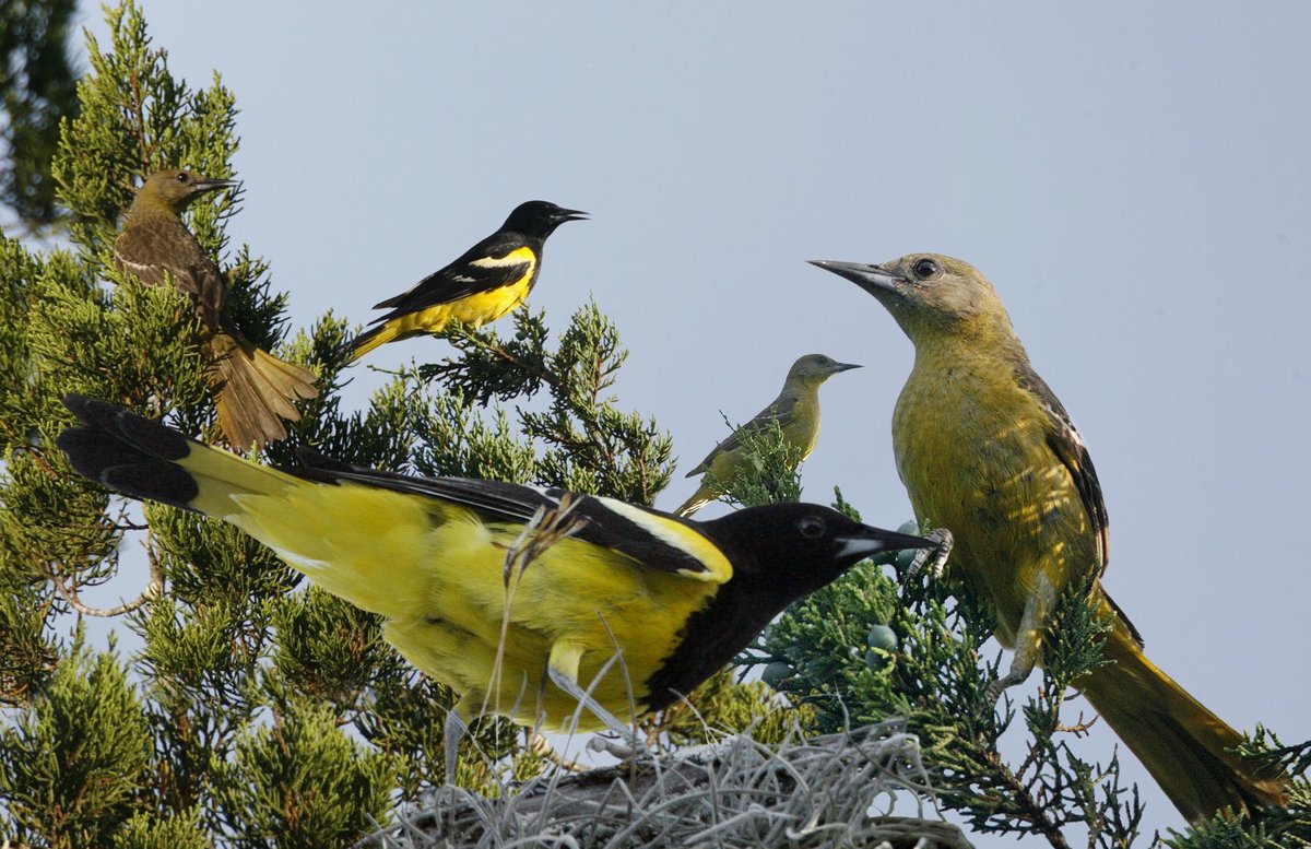 Found in Edwards Plateau, TX. Very rare to Canada and E Coast. Large with a long thin bill and tail. Ad ?: striking black and yellow with bold wing bars and yellow median coverts. Ad ?: upperparts dull gray-green with diffuse streaking. Underparts green, some with darker throat, very variable! 1st-yr ?: as pale throated ad. 1st-s ?: black throat. Call a hard 'chack.' Song: meadowlark-like qualities.