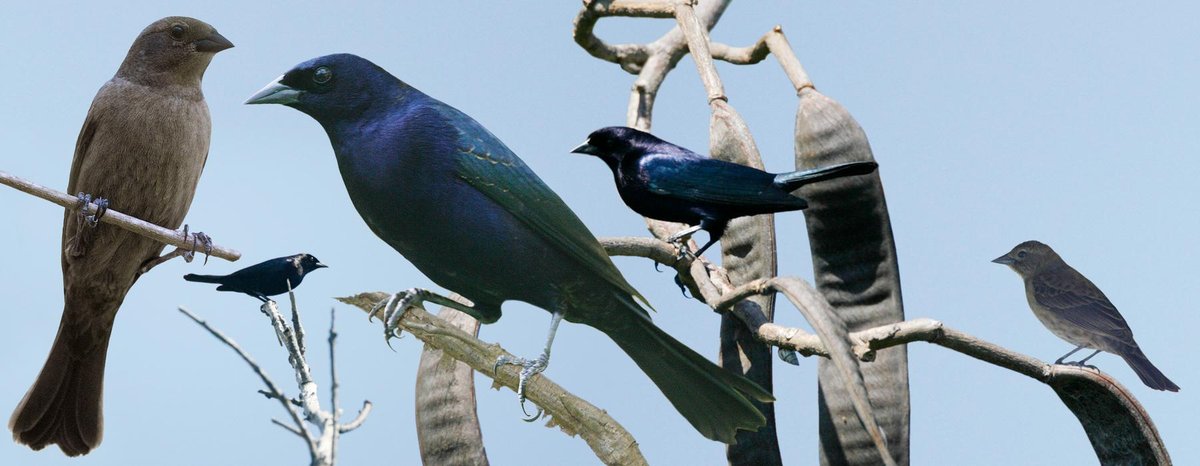 Scarce visitor to s. FL, very rare further n. Found in dry areas, gardens, at feeders, and often with other blackbirds. Slimmer than BHCO with more pointed bill. Ad ♂: uniformly glossy blue/purple, greener on wings. ♀: similar to BHCO but browner with less contrasting throat and darker ear coverts. Concentrate on shape.